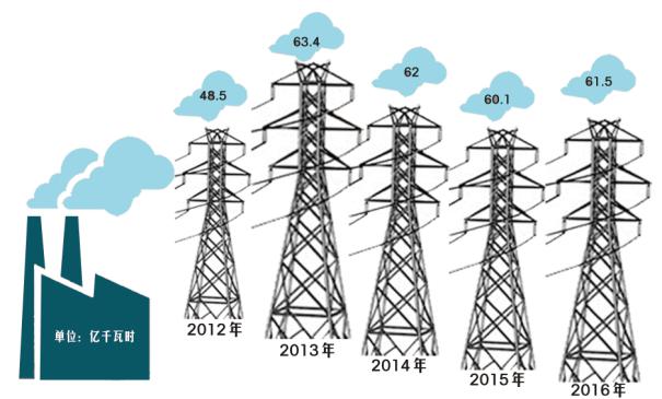 2012-2016年丹东市工业用电量