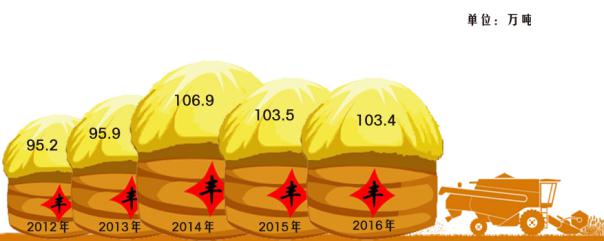2012-2016年丹东市粮食产量