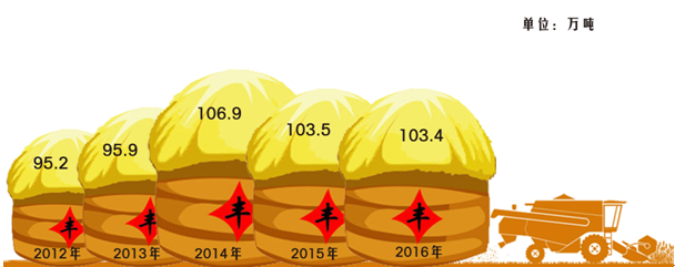 2012-2016年丹东市粮食产量