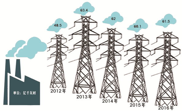 2012-2016年丹东市工业用电量